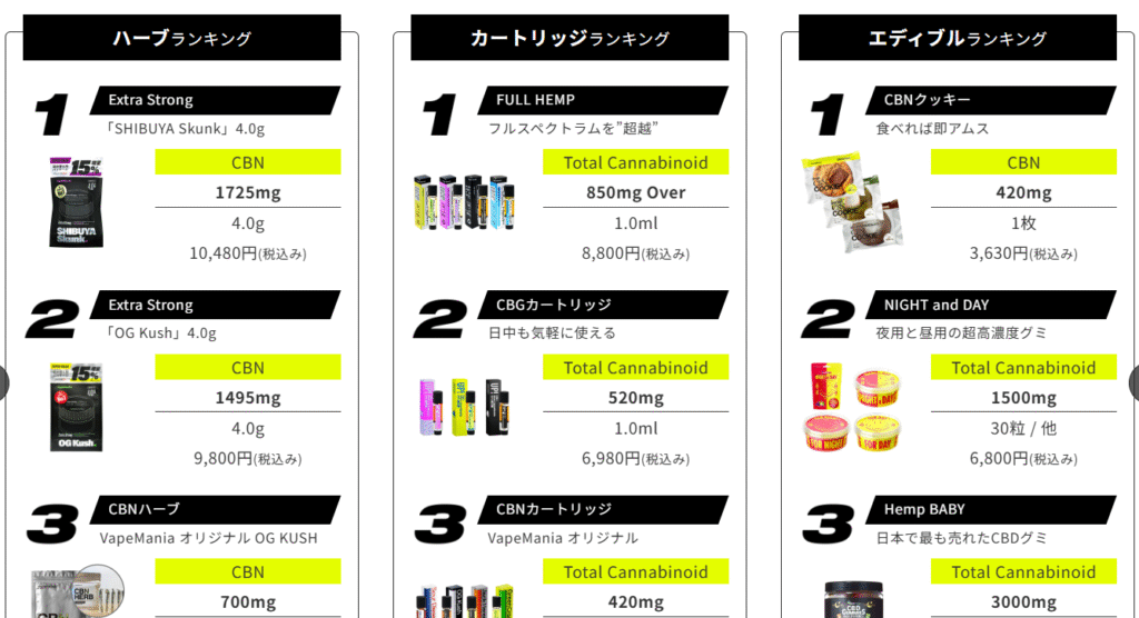 ✅ 本物のCBD・CBN・CBGを求めるならVapeMania一択!